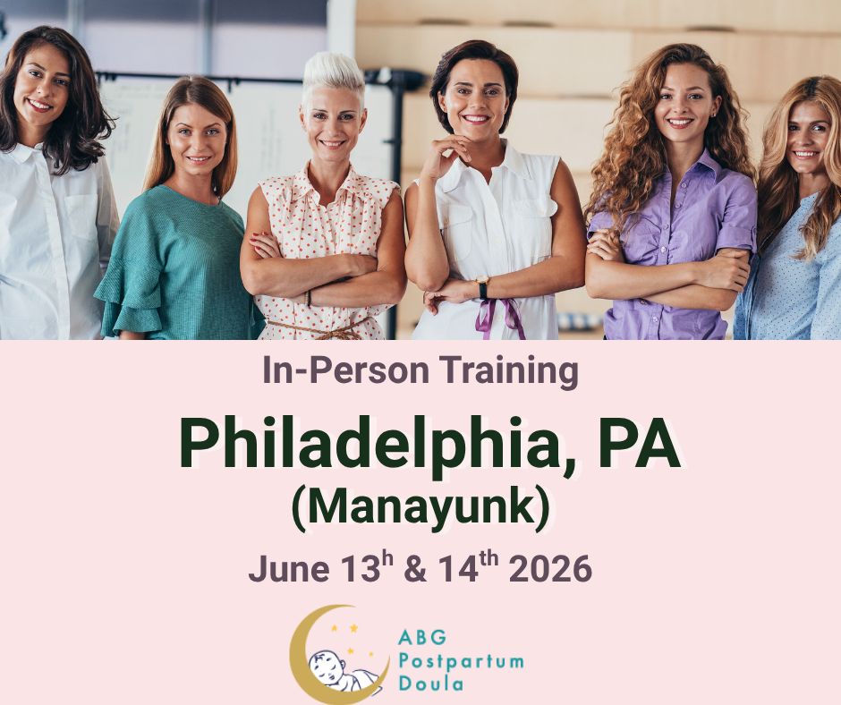 Sign up for ABG's in-person Postpartum Doula Training event in Philadelphia, PA, happening Saturday, June 13th, and Sunday, June 14th, 2026. This weekend workshop includes access to ALL online modules of ABG Postpartum Doula Training, where you can complete the other 6 modules, after which you may request your certification.